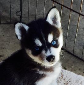 Khaliban is our pick boy out of Solo's litter born 3-9-2015. He is black & white with blue eyes.