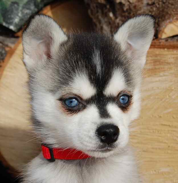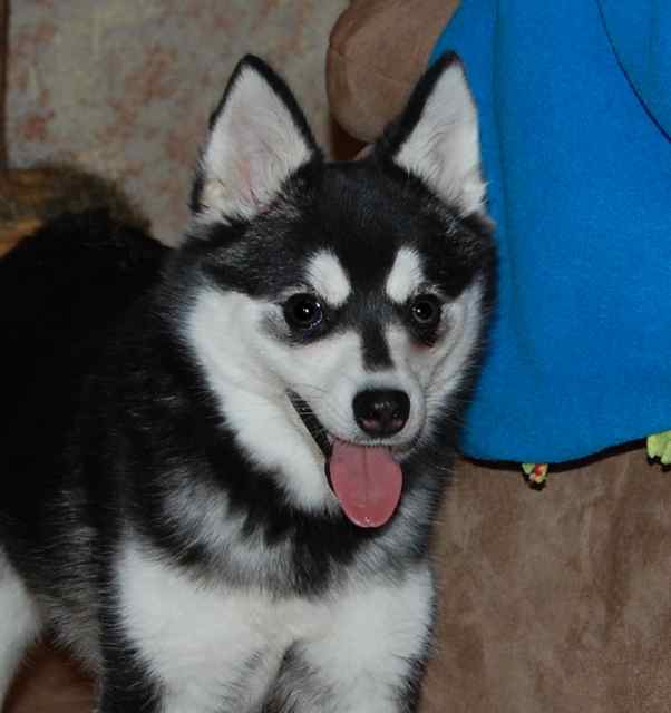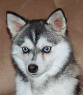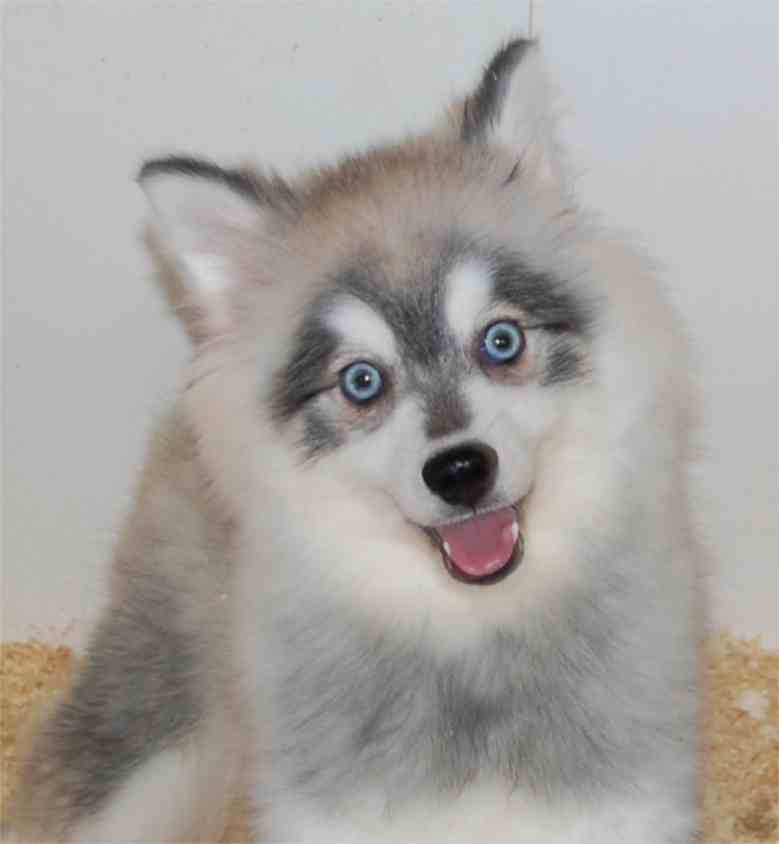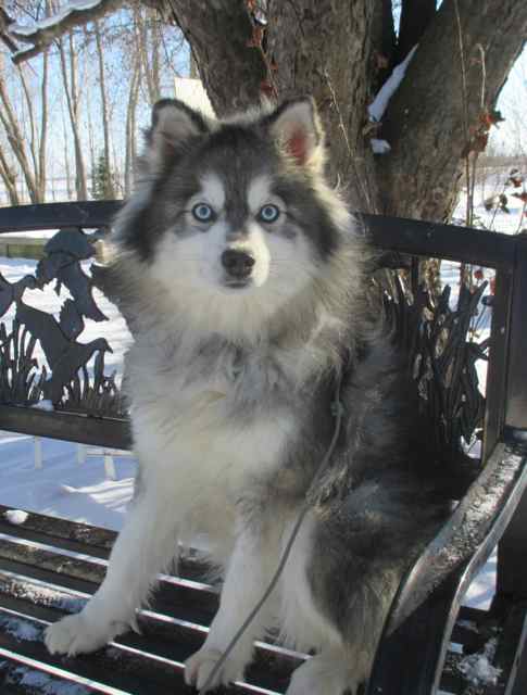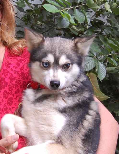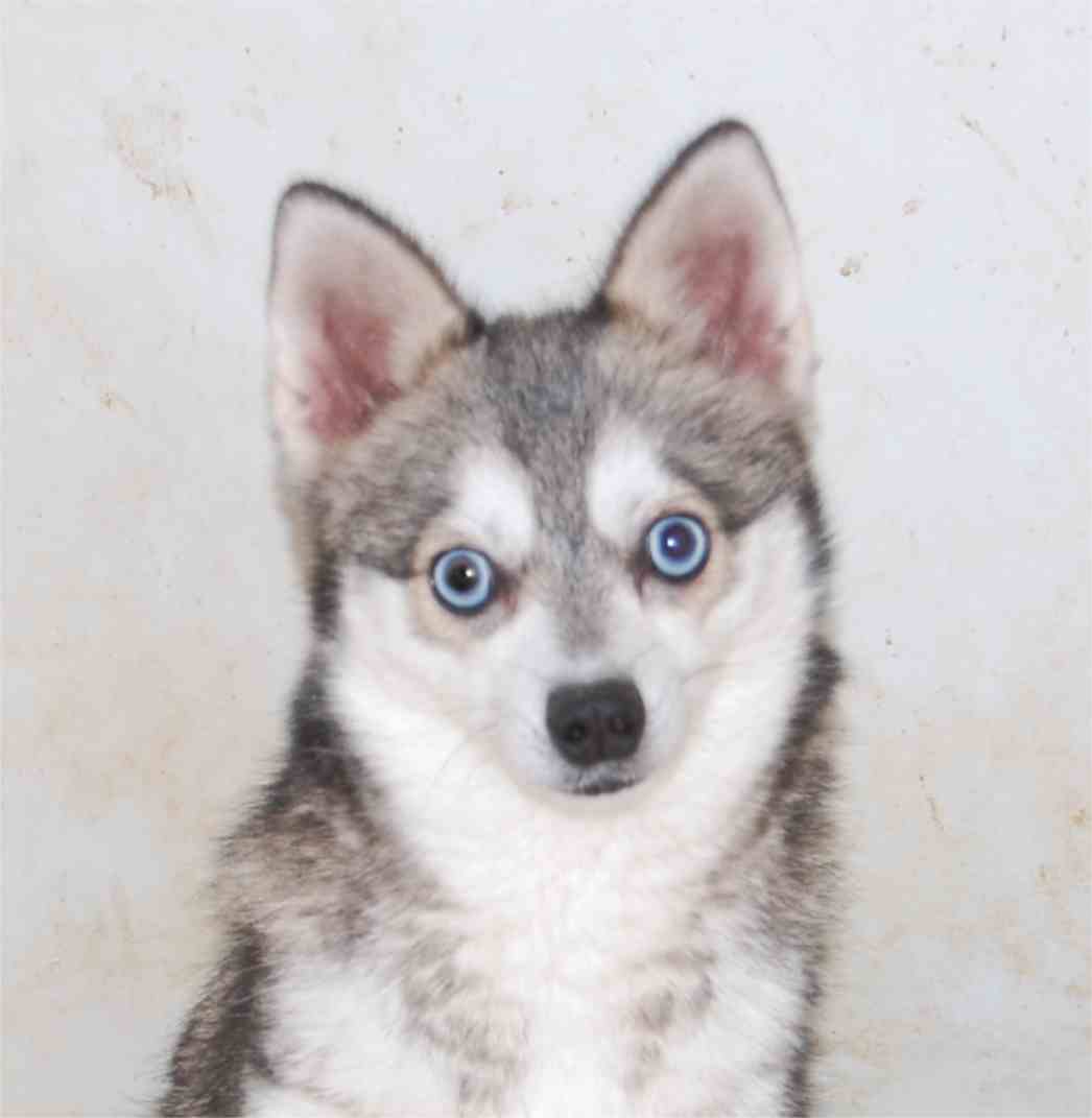 Kissi is gray and white with one blue and one parti color eye. She is a Miniature.